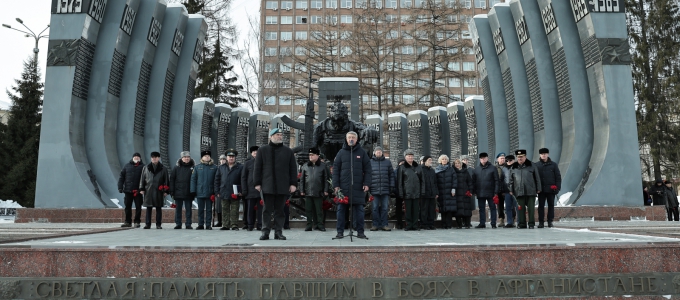 Митинг состоялся 15 февраля в Екатеринбурге у мемориала «Черный тюльпан» на площади Советской Армии