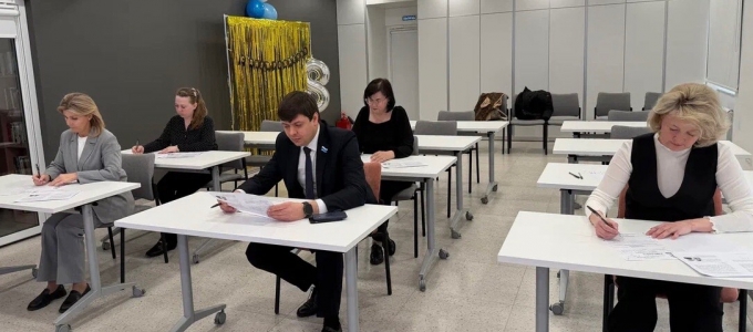 Председатель комитета по региональной политике и развитию местного самоуправления Михаил Зубарев написал Диктант Победы на площадке библиотеки «Душа» в Рефтинском городском округе