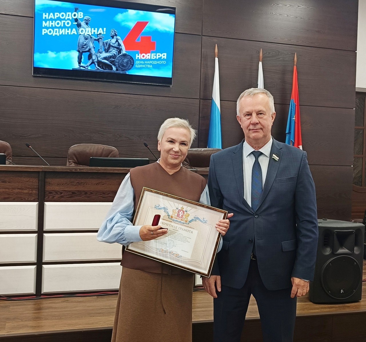 На празднике отметили заслуги тех, кто своим трудом и профессионализмом вносит значимый вклад в развитие города. По поручению председателя Законодательного Собрания Свердловской области Людмилы Бабушкиной депутат вручил почётные грамоты и особую награду регионального парламента – серебряный знак. Он пожелал собравшимся мира, добра и благополучия.