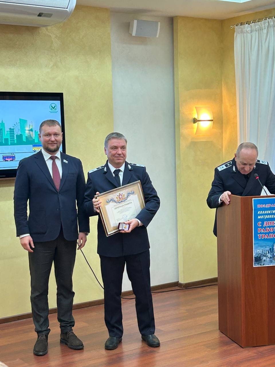 «От всей души желаю работникам транспортного комплекса крепчайшего здоровья, профессиональных успехов, безопасной дороги и бесперебойной работы оборудования! Пусть ваша работа приносит радость пассажирам и гордость самим себе!»,– сказал Владимир Смирнов.