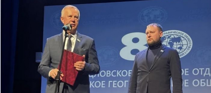 Юбиляров поздравили депутаты Законодательного Собрания Свердловской области – председатель комитета по экологии, природопользованию и охране окружающей среды Михаил Ершов и заместитель председателя комитета по вопросам законодательства и общественной безопасности Владимир Смирнов. По поручению председателя областного парламента Людмилы Бабушкиной Михаил Ершов зачитал поздравительный адрес. В обращении отмечается, что Свердловское отделение общества стало значимым научным и общественным центром, объединяющим географов, историков, экологов, путешественников, преподавателей и студентов.